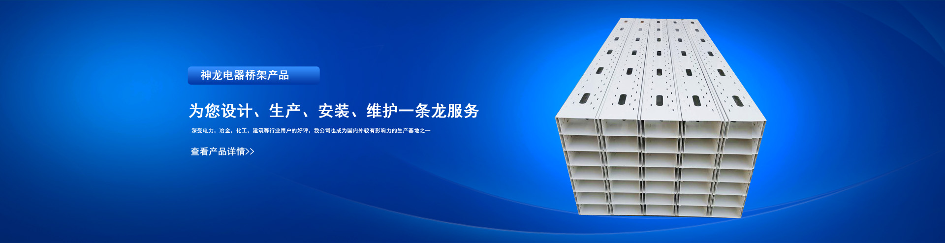 公司擁有進口設備三套,管材、橋架生產線八條,主營的各類電纜橋架、匯線橋架、防火橋架、地面線槽、開關柜、儀器儀表、管閥件、ф15-ф630口徑防腐塑料管材、管件等系列產品,深受電力,冶金,化工,建筑等行業用戶的好評,我公司也成為國內外較有影響力的生產基地之一。...……